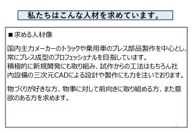 よる為(深夜勤務あり) ※面接は【奥州工場】にて行います。 ※駐車場利用自己負担なし ※昇給・賞与は業績、業務評価による ※書類選考はございませんが、事前連絡の上、応募書類(履歴書・ ハローワーク紹介状)を『奥州工場 採用担当者』宛にご郵送く ださい。 |