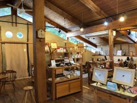 店舗店内には木製小物から家具まで、自社商品が並びます。